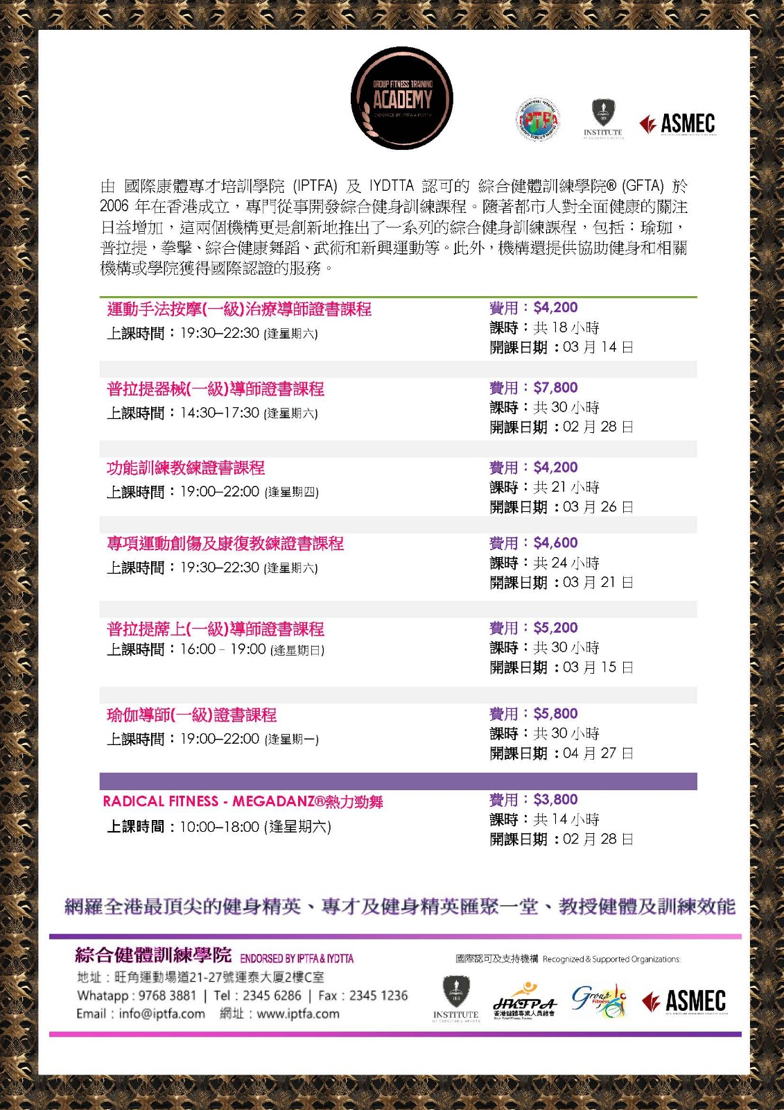IPTFA Hong Kong Upcoming Programmes (Mar 2026)